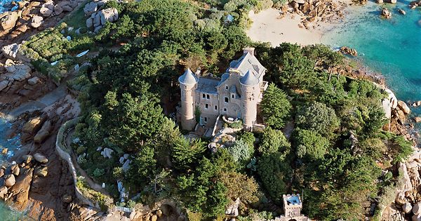 Costaeres Schloss In Tarbes Frankreich In Der Bretagne 06 10 2017 Die Burg Auf Der Cote De Granit Rose Auf Einer Felsigen Insel Am Strand Von Ploumanach In Der Ortschaft Perros Guirec Das Schloss Ist