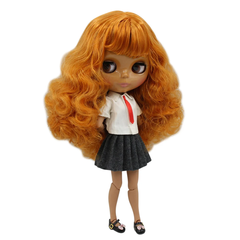 Icy Dbs Blyth Doll 1 6 Toy Dark Skin Joint Body Bjd Curly Orange Hair With Bangs 30cm Toy Dolls Aliexpress